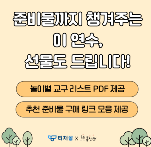 각 놀이에 필요한 교구, 준비물, 실전 팁까지 꼼꼼히 안내해 드립니다.